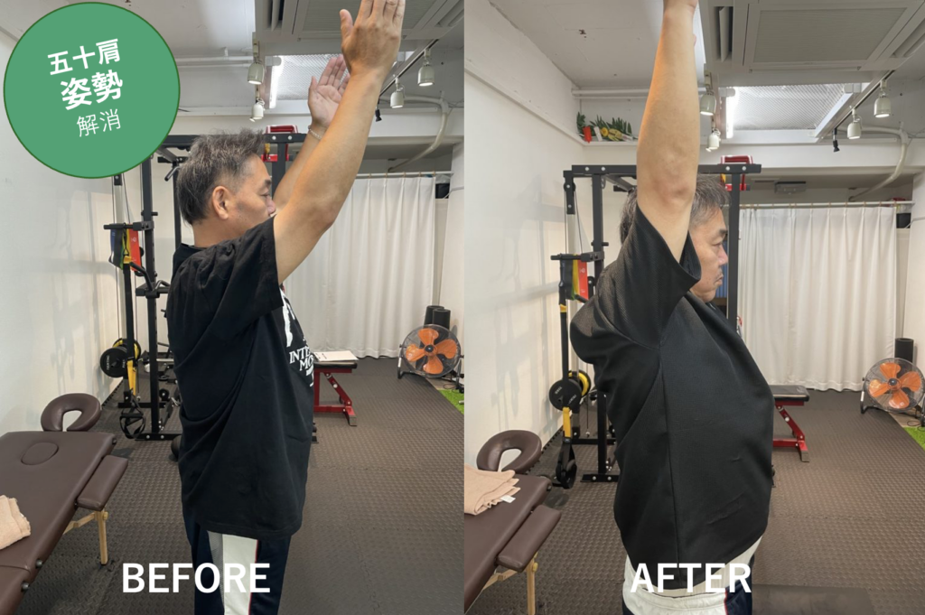 開始1ヶ月後で上がらなかった手が上がるようになり、姿勢も改善。ゴルフ競技をされており、五十肩のお悩みと身体の柔軟性UP、ゴルフパフォーマンスUPが目標。