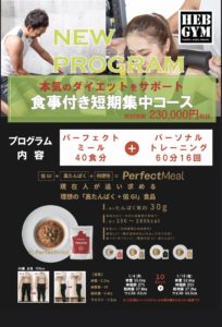 パーフェクトミールとHEB GYMのパーソナルトレーニングで理想の身体を目指しましょう!!